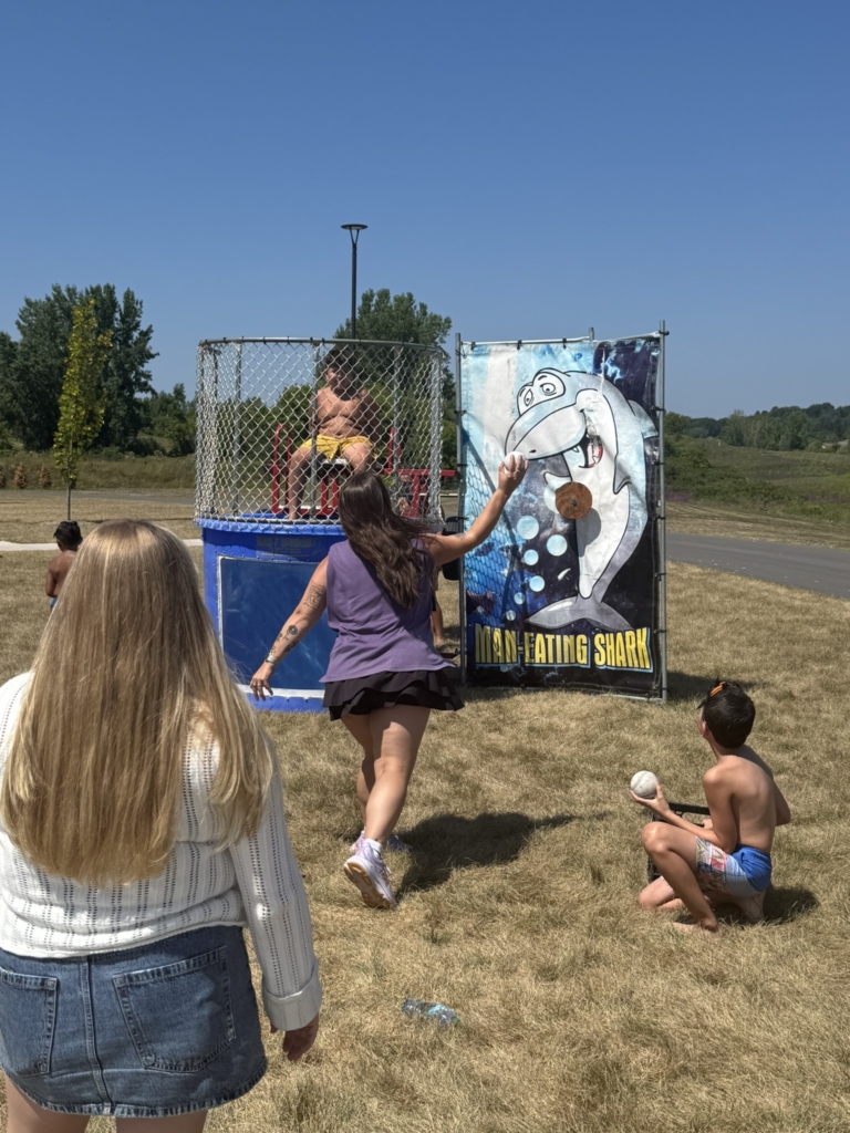 Youth Programs Coordinator Codey Fuller was the first to brave the dunk tank, and plenty of kids were eager to take a turn too.